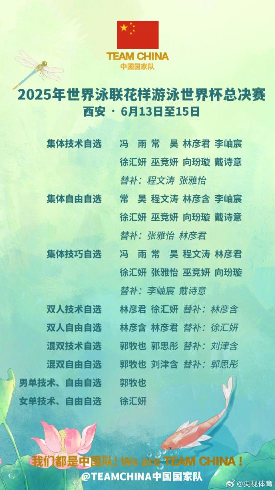 冯雨、常昊领衔!花样游泳世界杯总决赛中国队名单发布